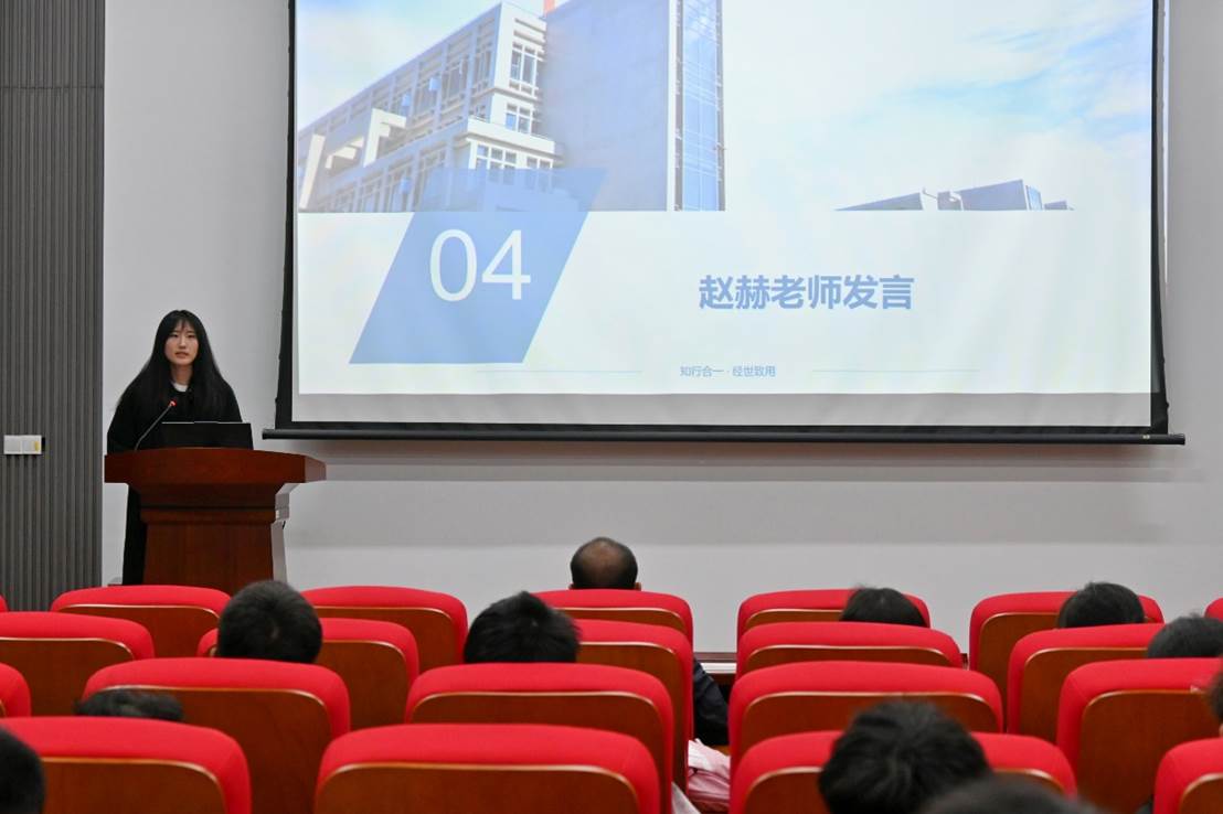 赵赫对新一届“尚学团”成员进行寄语,并就“三十佳优良学风比评”活动中可能遇到的问题进行了详细解答和说明。她希望尚学团成员们以“尚学”的头衔严格要求自己,勤学善思,积极向上,做“尚学”的先行者,示范者,带领同学们积极践行良好的学习生活习惯,互帮互助,共同进步,建设良好的班风学风。