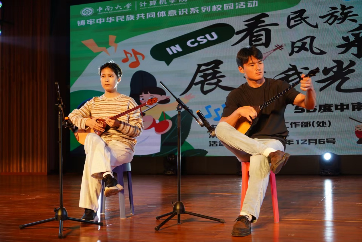 最令人瞩目的“民族风采展示”单元,将汇演推向高潮:塔依曼、丽达的冬不拉弹奏《奔腾的骏马》,让草原的辽阔随乐声流淌;娜孜依拉·吐尔干巴依的舞蹈《火焰之舞》似热浪翻涌;“56度中南同心文艺荟”带来的民族舞蹈串烧,以多元舞姿诠释了各民族文化的交融之美,赢得全场经久不息的欢呼。