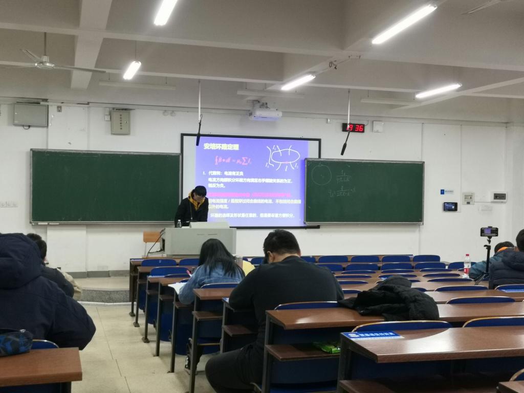 1月5日晚上7点,由来自计算机科技1904班的朋辈导师李朝主持的大学物理考前辅导正式开始。李朝导师带领大家复习了电场和磁场关键公式,分析了考试主要题型,并对重难点问题着重分析讲解。1月8日下午4点,概率论与数理统计考前第一次辅导开始,由朋辈导师H动漫