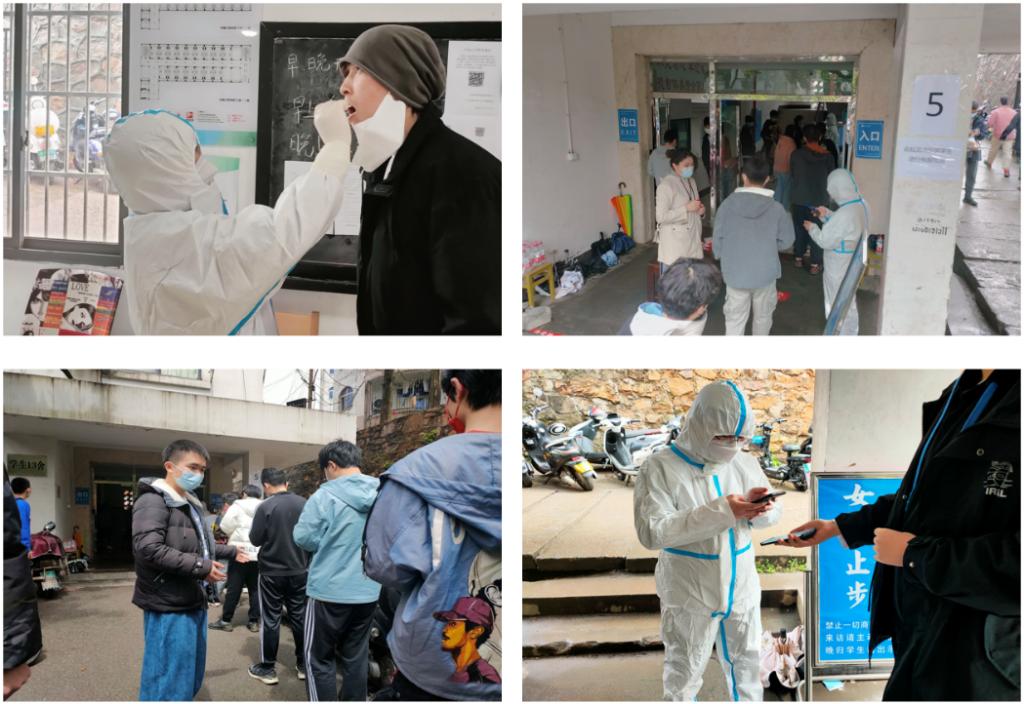 检测过程中,全体同学全程均佩戴口罩,保持一米间隔,积极配合核酸检测人员的工作。核酸检测现场井然有序,每一间寝室均做到应检尽检。