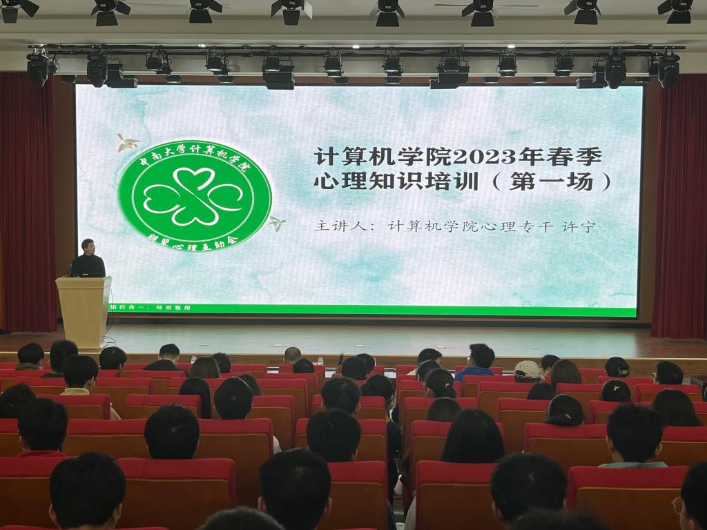 朋辈心理互助会于新校区信息楼108报告厅开展了2023年春季第一场心理知识培训会。此次培训会由院心理专干、21级辅导员许宁老师主讲,面向20级、21级各班心理委员、寝室长以及心助会全体成员。院学工办主任师雷宏老师,副主任李梦老师,22级辅导员何星霖老师出席了此次活动。